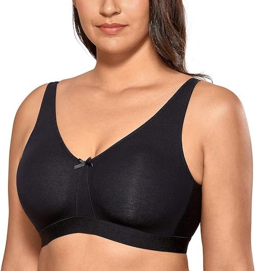 Underwires rub against the skin, so if the skin is wet it can cause irritations, skin tags, skin rash, etc. Ideally, you’ll want to go with a bra that’s stretchy, comfy, and wire-free. If you have smaller boobs you can definitely enjoy the wire-free bras! For bigger boobs, it’s a bit tougher to find a wire-free bra that offers support, but I’m sure it must exist (I’m taking recommendations!).