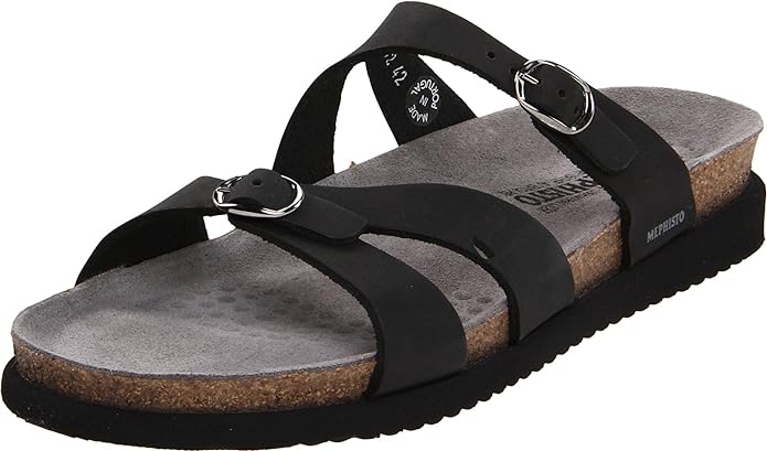 - Feel comfortable – that means no painful thongs or straps, and with a cushy footbed in suede or cork (no plastic) that is not slippery