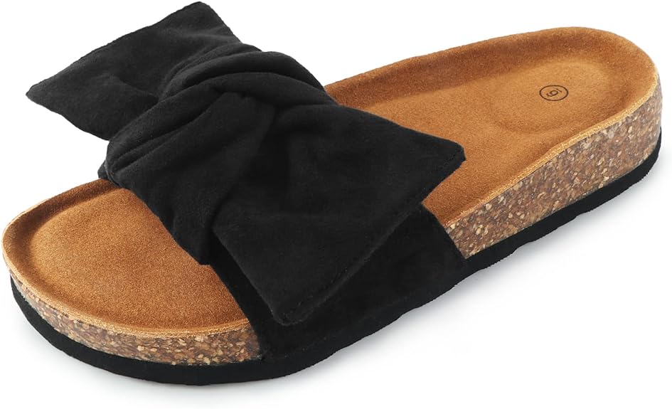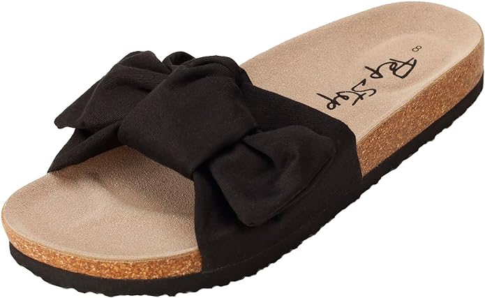 PepStep Slide Sandals for Women/Cork Sole/Canvas Knot Bow/Womens Slides/Sandals for Women: