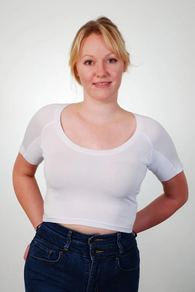 You may be afraid that the sweat pads won’t be comfortable or that they may fall off. So what else can you do to avoid sweating through your shirt? You can get a sweat-proof t-shirt that’s got the sweat pads built-in! The pad areas show on the designs of these t-shirts, so they are better used as undershirts. Just make sure the outer shirt is a bit larger so that the sweat absorbed by the undershirt does not transfer over the outer shirt. That will hide your pit sweat nicely. There are a few sweat-proof t-shirt brands available online: Thompson Tee (both men and women) Ejis (men only) and DewDrop (women only).