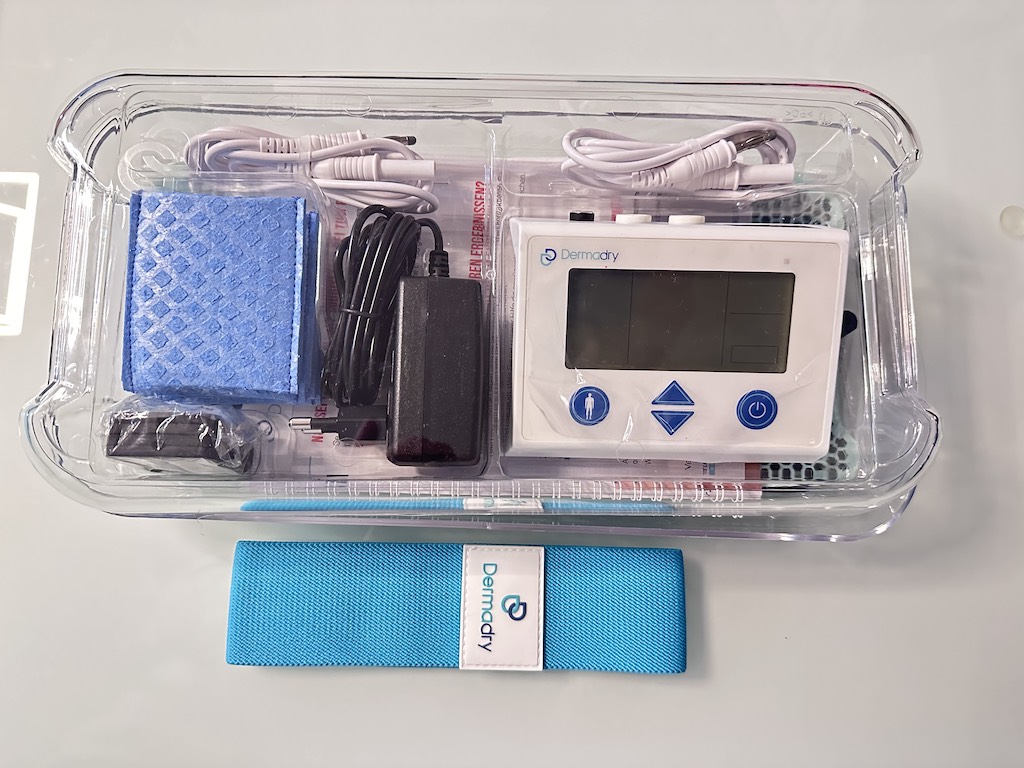 Below in the left picture is how the iontophoresis machine I had looked like. I know, looks like a torture machine! :/. Nowadays I use a much more sophisticated iontophoresis machine from DermaDry called DermaDry Total as seen in the right picture.